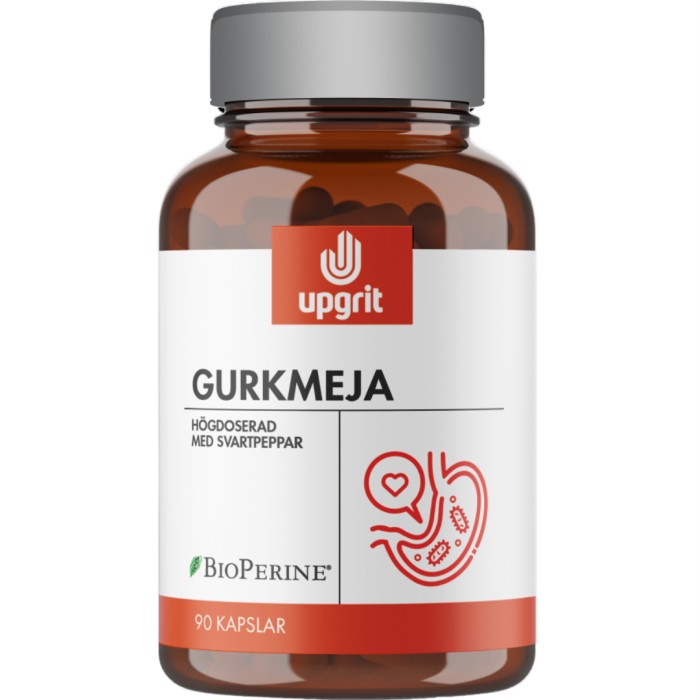 Upgrit Gurkmeja är ett kosttillskott som innehåller gurkmeja och svartpepparextrakt av hög kvalitet. Gurkmeja innehåller en hög koncentration kurkumin, som är det mest studerade aktiva ämnet i gurkmeja. Upgrit har kombinerat gurkmejan med svartpepparextrakt eftersom piperin i svartpeppar ökar upptaget av gurkmejaextraktet.