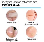 VårtFri Freeze är en vårtbehandling för hemmabruk som tar bort vårtor på händer, armar och fötter. Ej lämplig för barn under 4 år.