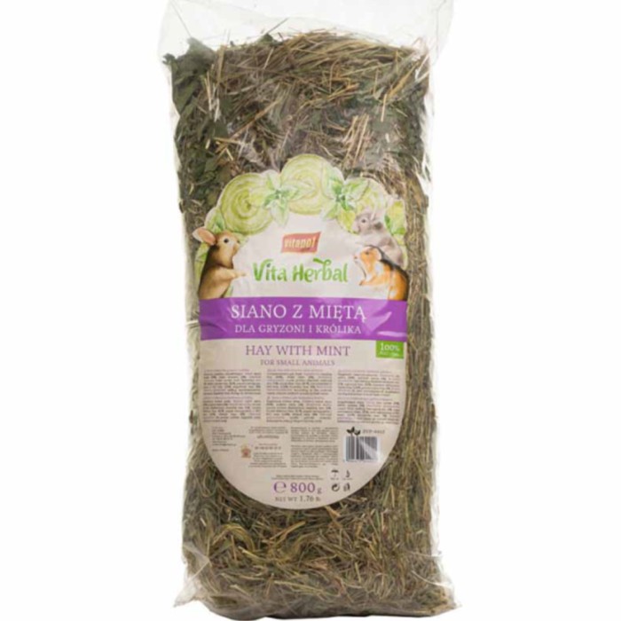 Vita Herbal Hay Mint är högkvalitativa, aromatiska, noggrant torkade grässtrån från polska ängar, rika på vitaminer och mineraler. Hö är en lågkalorimat med högt fiberinnehåll, vilket stödjer djurens matsmältningssystem. En bra diet för gnagare och kaniner bör säkerställa konstant tillgång till denna viktiga föda.