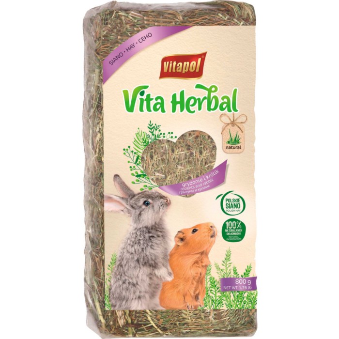 Vitapol Hö är högkvalitativa, aromatiska, noggrant torkade grässtrån av bästa kvalitet från polska ängar, rika på vitaminer och mineraler. Hö är en lågkalorimat med högt fiberinnehåll, vilket påverkar den korrekta gången av matsmältningsprocesser hos djur. Den optimala kosten för gnagare och kaniner bör ge konstant tillgång till denna typ av mat. Dessutom fungerar hö också som strö och det grundläggande materialet för att bygga ett bo. Man behöver säkerställa konstant och obegränsad tillgång till färskt hö varje dag.