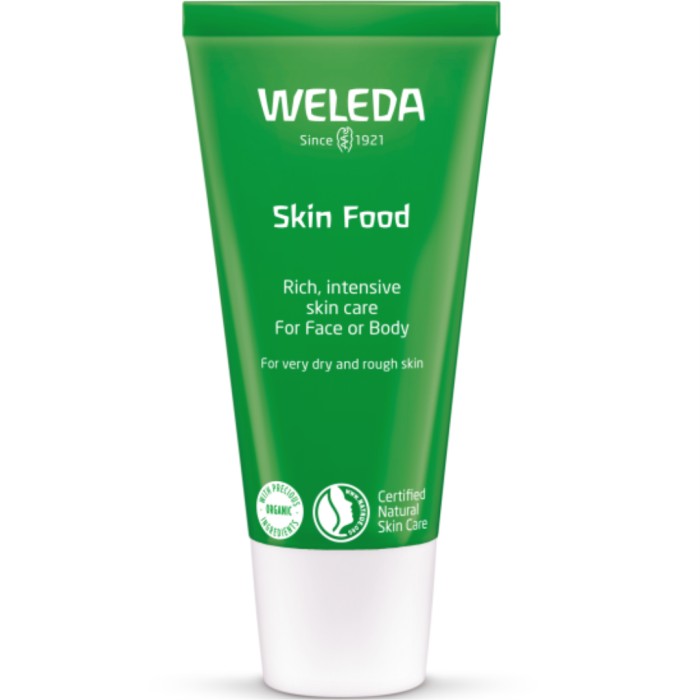 Weleda Skin Food har en effektiv formulering och innehåller växtextrakt från kamomill, ringblomma, styvmorsviol och rosmarin som återfuktar och mjukgör huden. Tack vare sin unika sammansättning av naturliga ingredienser och sin rika konsistens verkar Skin Food vårdande på hud som är mycket torr.