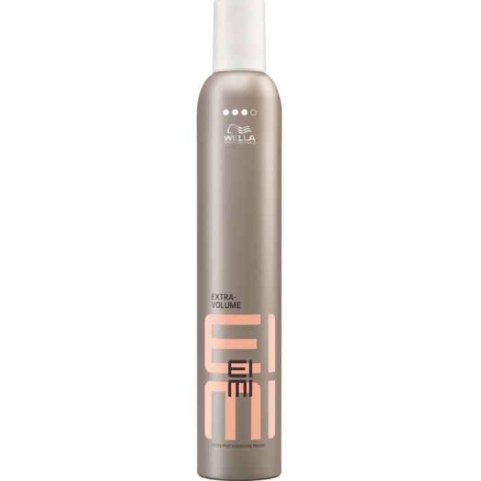 Wella Professionals EIMI Extra Volume Mousse är en hårmousse som skapar stadga och ger hård fixering åt frisyren. Wella Professionals EIMI Extra Volume är en volymgivande mousse som hjälper till att skydda håret mot uttorkning och värme under föning. Wellas professionella stylingmousse ger volym, support och hård fixering åt håret.