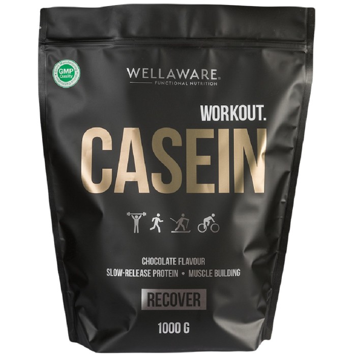 WellAware Casein Chocolate är ett kaseinpulver tillverkat i Sverige med rik smak av choklad. Kasein är ett protein som kommer från komjölk, och det är huvudbeståndsdelen i mjölkprotein. Kaseinprotein har ett långsammare upptag i kroppen jämfört med vassleprotein, vilket ger en fördröjd frisättning av aminosyror. Det gör det till ett bra mellanmålsprotein, och det passar även mycket bra som kvällsprotein att inta innan läggdags.