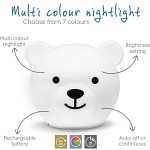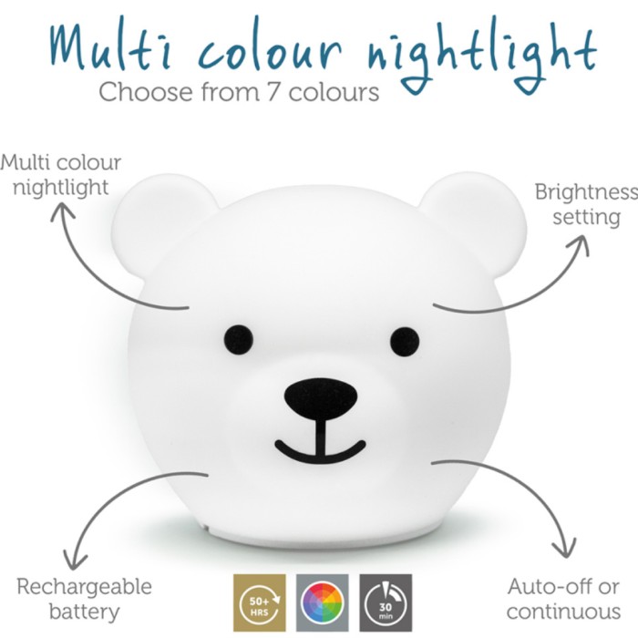 Bor the Bear Nightlight från Zazu är en söt och mjuk nattlampa i silikon som kanske gör nattningen enklare och roligare. Med sitt uppladdningsbara batteri och val av flerfärgade ljuslägen blir Bor en söt liten följeslagare i barnets rum – från sagostund till nattsömn. Kan användas för nattningsrutiner och mysiga stunder, och tas med på resor och utflykter.