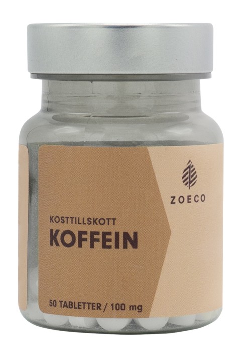 Zoeco Koffeintabletter innehåller 100 mg koffein och kan användas vid tillfällig trötthet. Koffein bidrar till att öka vakenheten och motverkar därigenom trötthetskänsla. Koffein bidrar till ökad uthållighet samt minskad upplevd ansträngning under långvarig träning. För vuxna över 18 år. 1 tablett per dag vid behov.